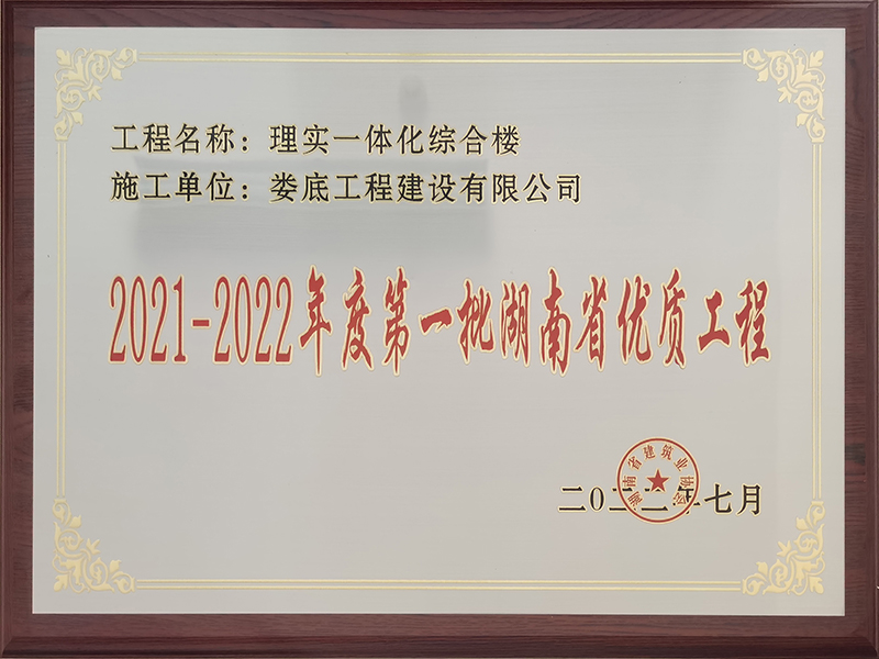 2021-2022年度第一批湖南省優質工程獎牌(婁底職業技術學院理實一體化綜合樓)