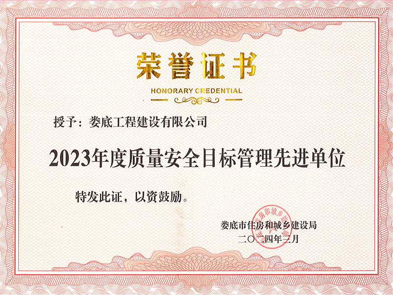 2023年度質量安全目標管理先進單位榮譽證書