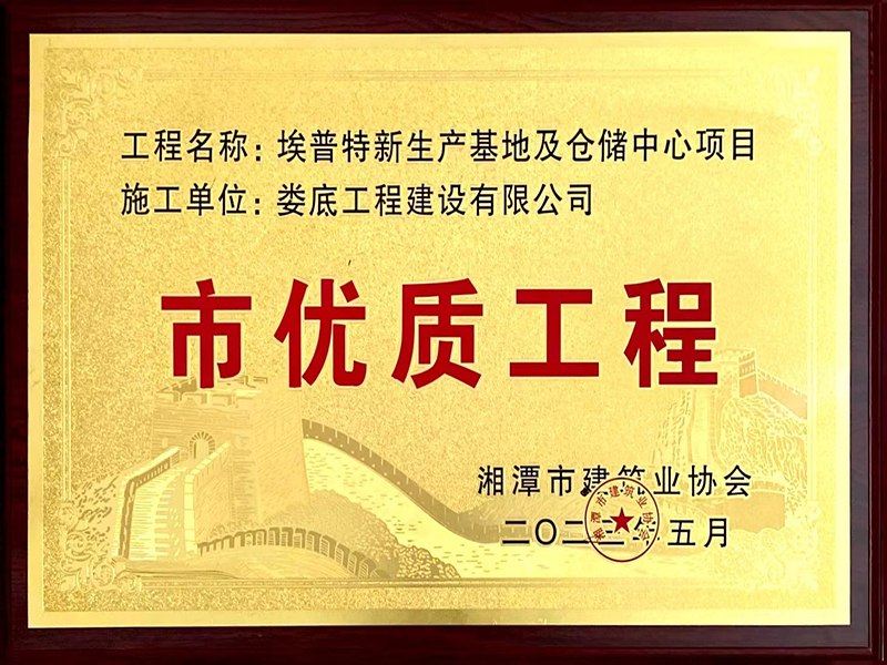 2022年度埃普特新生產基地及倉儲中心項目湘潭市優質工程獎牌