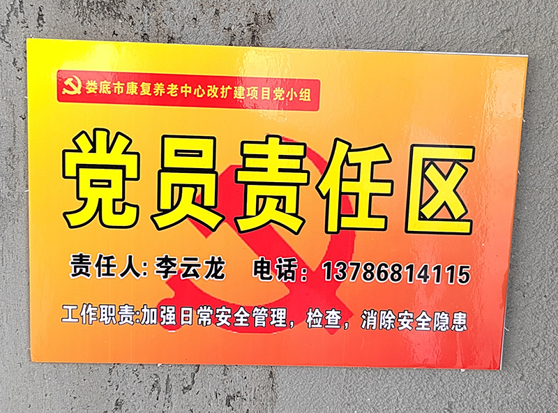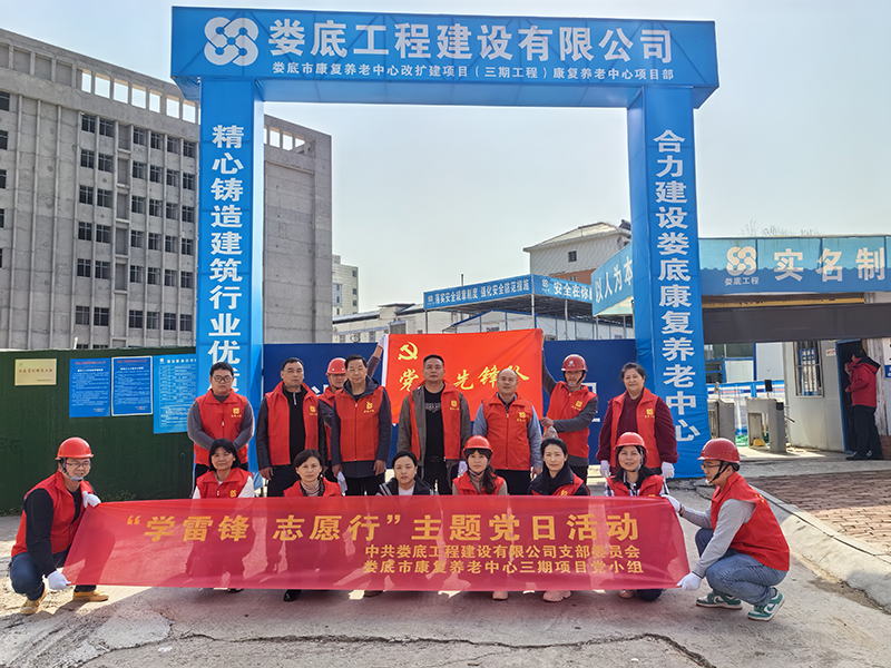 公司黨支部秉承“抓黨建就是抓生產力”的理念,全力推進“黨建進工地、支部建在項目上”標桿創建活動,努力實現“生產一線有黨員、業務骨干是黨員、關鍵時刻看黨員”的工作目標。于2023年4月1日成立婁底市康復養老中心改擴建項目黨小組,現有正式黨員3名。項目部設有專門的黨建活動場所,黨組織標識牌、黨旗、入黨誓詞等全部設置在顯目位置。場外設置了專門的黨建宣傳欄。
