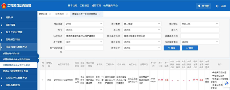 該項目在2023年度安全生產標準化季度考評和質量管理標準化季度考評中獲得了較好成績。質量管理標準化季度考評第二、三季度被評為優良;安全生產標準化季度考評第三、四季度被評為優良。