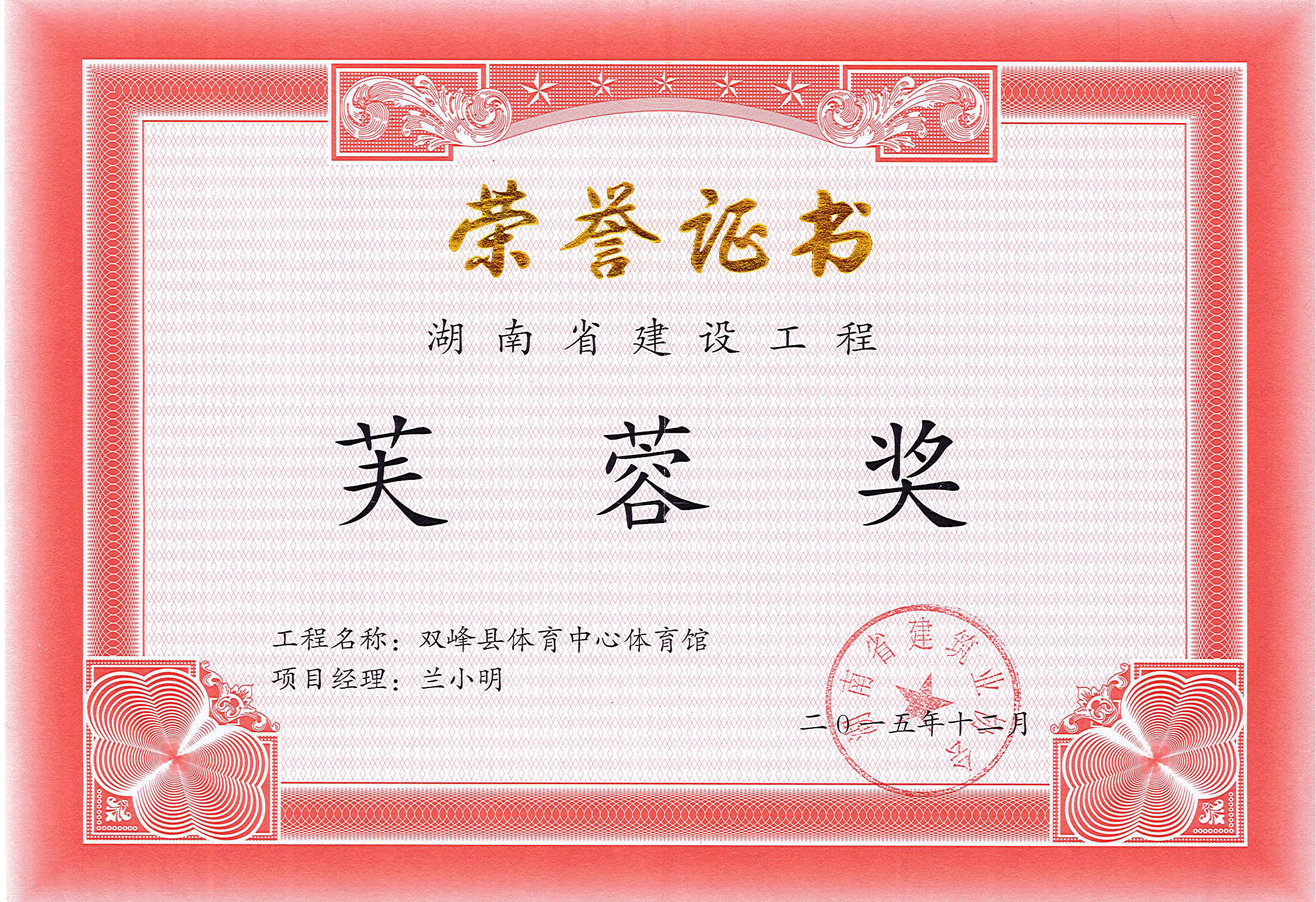 2015年公司榮獲湖南省建設工程芙蓉獎