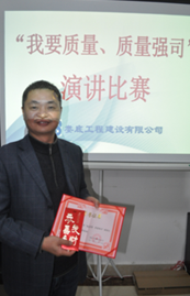 2017年11月17日晚,公司在機關辦公室大會議室舉辦了一場別開生面的“我要質量,質量強司”演講比賽。共有16位項目經理上臺發表了主題演講。經過評委現場打分評定,來自百弘學府城的項目經理李朝陽榮獲一等獎;公司江龍灘基地項目經理李紅暉、雙峰三塘鋪獨立工礦區現代產業園蜉化器項目項目經理謝晃分獲二等獎。