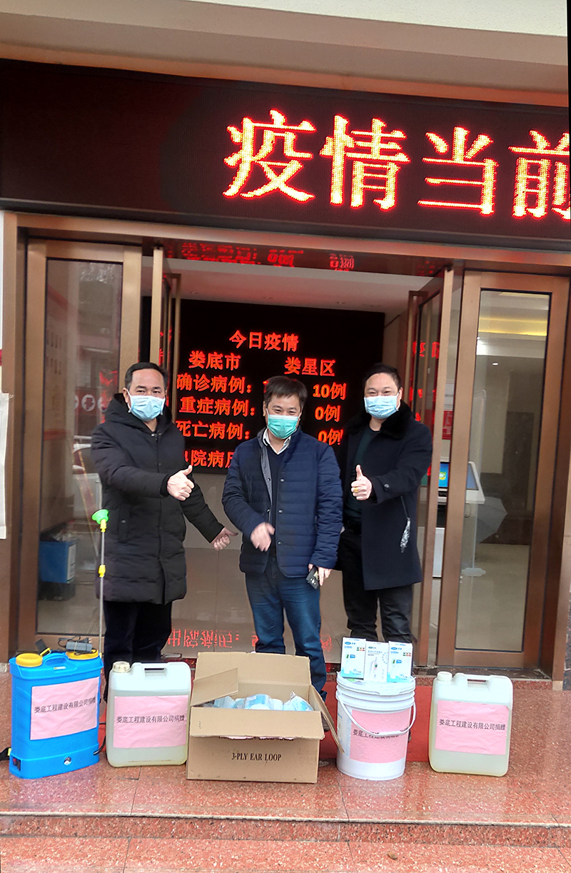 守望相助,共戰(zhàn)疫情。公司領導得知婁星區(qū)樂坪街道辦事處火車站居委會防疫物資短缺,決定從公司有限的防疫物資中擠出一批支援社區(qū)疫情防控工作。2月21日,公司總經理胡勁代表婁底工程建設有限公司將1500個一次性口罩、三支紅外線體溫檢測儀及消毒水、消毒粉等捐贈給火車站社區(qū),以實際行動支援社區(qū)的防控工作。