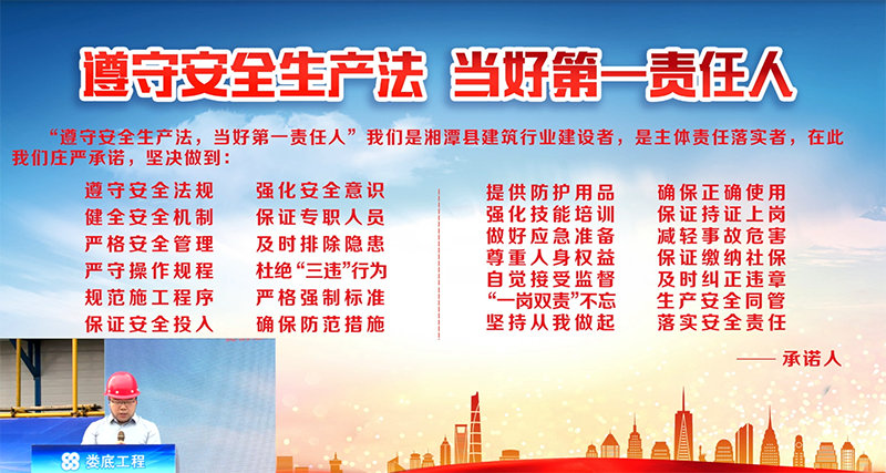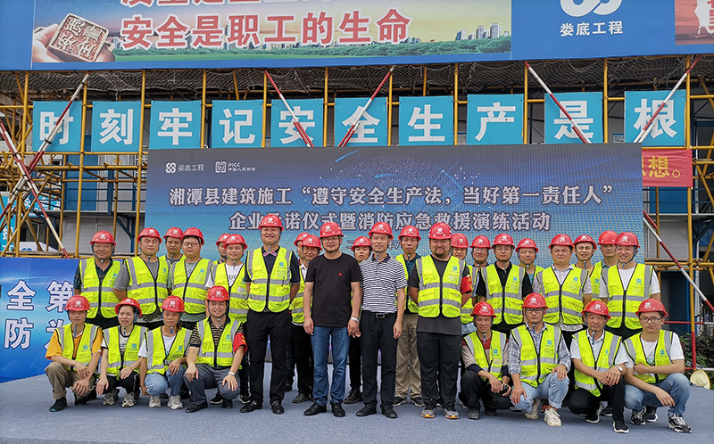 為了進(jìn)一步加強(qiáng)安全生產(chǎn)工作,認(rèn)真落實(shí)2022年安全生產(chǎn)月活動文件要求“遵守安全生產(chǎn)法,當(dāng)好第一責(zé)任人”有效防范事故的發(fā)生,為進(jìn)一步提高公司安全管理水平,規(guī)范公司安全生產(chǎn)過程的管理工作,為加強(qiáng)和促進(jìn)應(yīng)急管理工作,全面貫徹“安全第一,預(yù)防為主,防消結(jié)合”的消防工作方針,2022年6月23日9:00,湘潭縣住房和城鄉(xiāng)建設(shè)局在我司承建的湘潭江聲壹號一期項(xiàng)目開展了湘潭縣建筑施工“遵守安全生產(chǎn)法,當(dāng)好第一責(zé)任人”企業(yè)承諾儀式暨消防應(yīng)急救援演練活動。出市本次活動的的嘉賓有:湘潭縣人民政府副縣長肖睿,湘潭縣政府辦副主任言志強(qiáng),湘潭縣住建局黨委書記局長吳能,湘潭縣應(yīng)急管理局黨委書記局長:劉江華,德智置業(yè)公司總經(jīng)理:龔永兵,婁底工程建設(shè)有限公司副總經(jīng)理顏克靈,中國人民財(cái)產(chǎn)保險(xiǎn)股份有限公司湘潭支公司經(jīng)理朱星海。